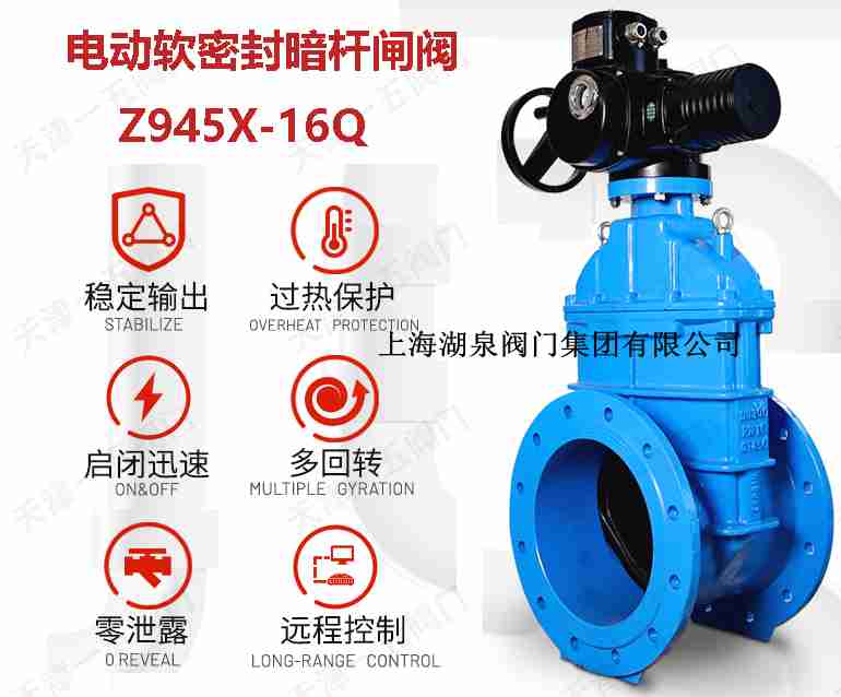 021-64162222 湖泉閥門軟密封法蘭閘閥 z945x-10q-dn80 價格Z945X電動軟密封閘閥概述 可根據用戶的要求配裝各種電動執行機構,實現遠距離控制及自動控制。除具有彈性座封閘閥的優點之外,還具有靈敏、可靠、安裝方便等特點。電動軟密封閘閥可廣泛用于自來...Z945X電動軟密封閘閥可根據用戶的要求配裝各種電動執行機構,實現遠距離控制及自動控制.具有靈敏、可靠、安裝方便等優點??蓮V泛用于自來水、污水、建筑、石油、化工、食品、醫藥等行業。